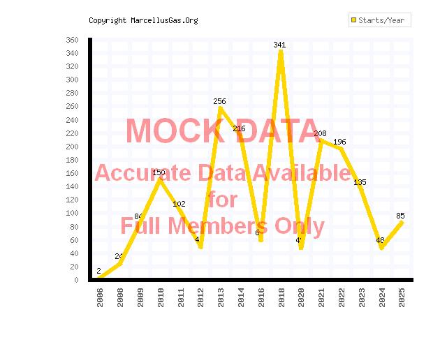 Unconventional Well Starts by Year for Springville Township, Susquehanna County, PA